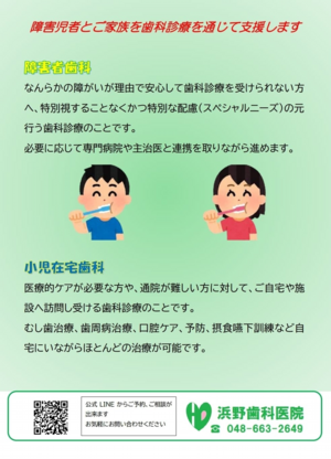 特別視することなくかつ特別な配慮の元、歯科診療を行います。